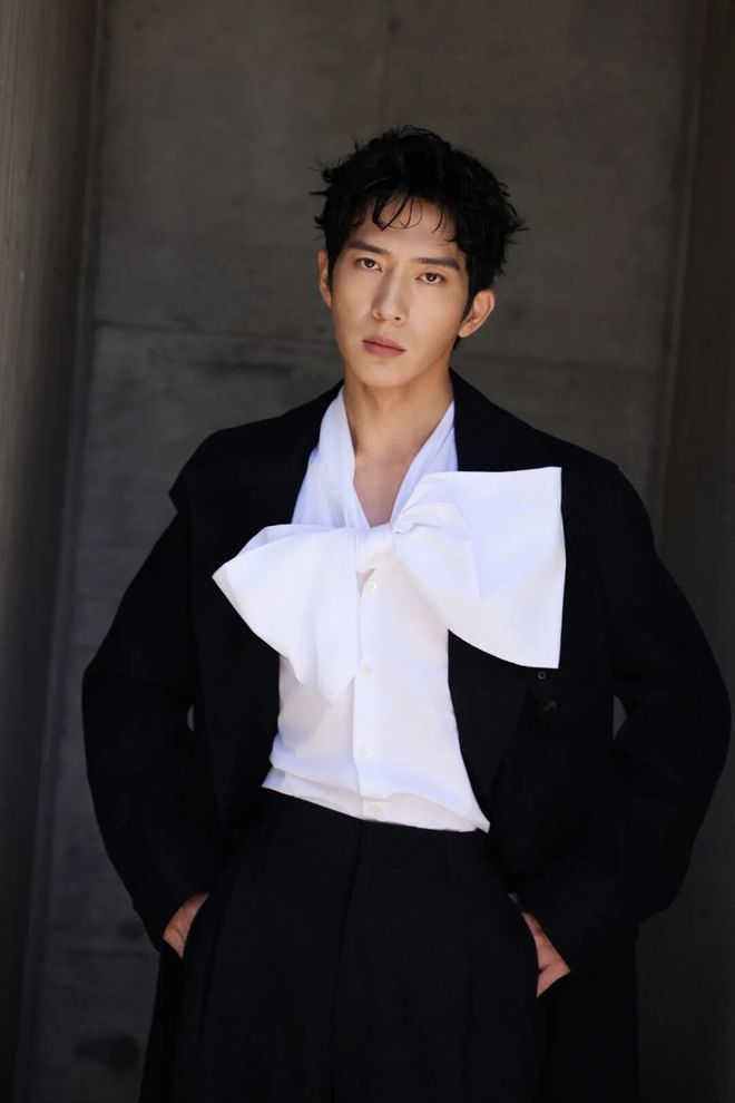 井柏然参加活动的时候也做了超大号配饰的造型,胸前的这个超大的蝴蝶结搭配全黑长款廓形风衣以及小卷毛发型,极简中不失高级,很养眼的穿搭。