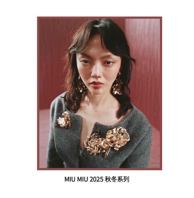 除了这些做超大号造型的时髦精们,2025的秋冬秀场上,也出现了超多抢眼的配饰。不论是MIU MIU那枚超大型的镀金胸针,还是VALENTINO夸张比例的长款项链,抑或是PRADA金属耳环与针织颈饰的搭配,都让配饰不再只担任它们曾经的角色,而是成为了体现个人着装态度的决定性单品。