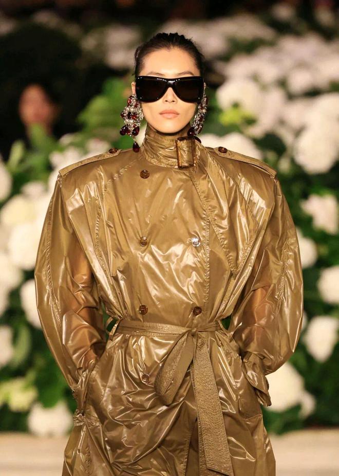 最近戴超大耳环的还有刘雯,在本季巴黎时装周上,刘雯为Saint Laurent 2026夏季系列走秀,一身廓形风衣搭配腰带,还有超大超夸张的的耳环修饰,金属质感与极简剪裁融合,冷艳质感完美诠释圣罗兰美学。