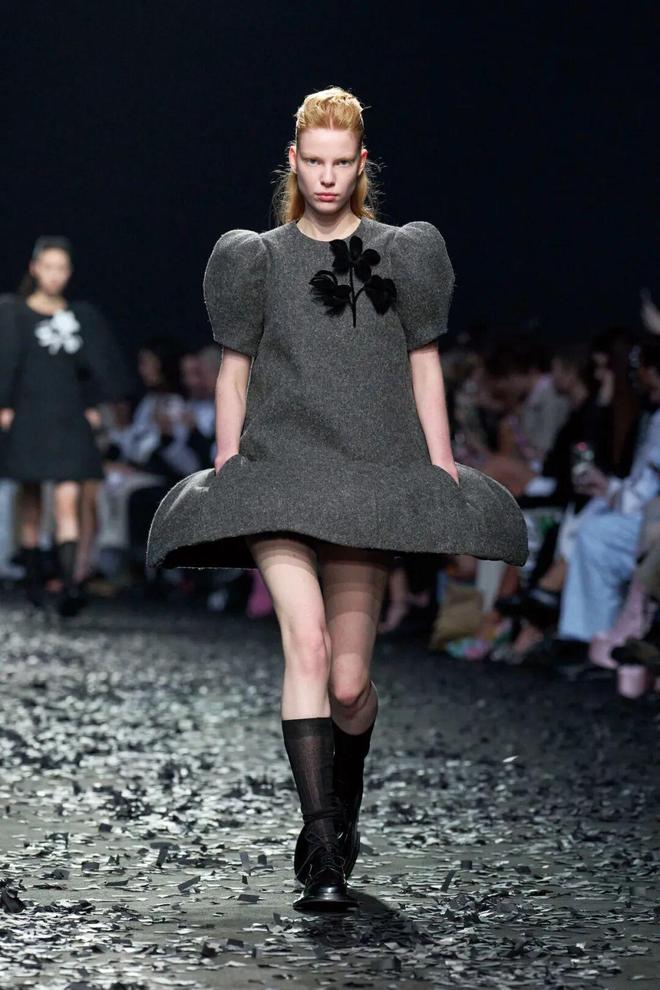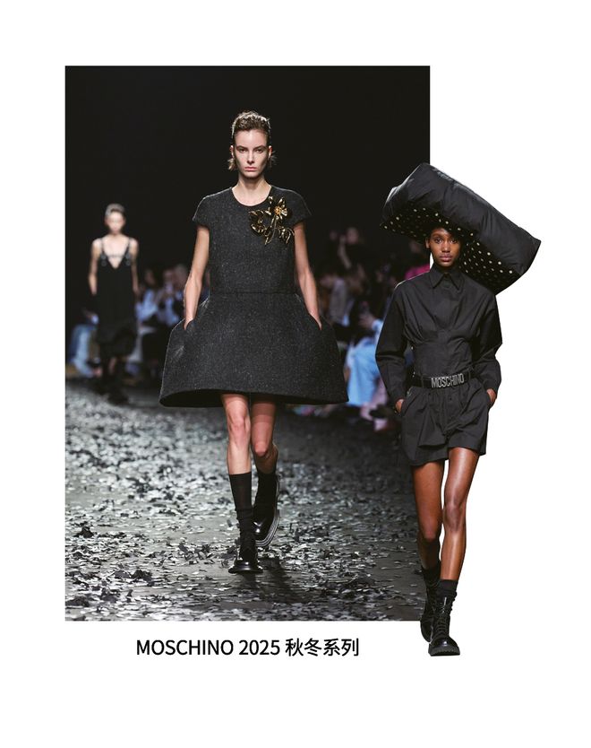 MOSCHINO 2025秋冬系列以“未完成感”为设计灵感,将时装工坊的幕后制作过程直接搬上秀场。解构风格剪裁贯穿始终:的缝线、未缝合的接缝,以及模仿人台状态的拼贴连衣裙,刻意暴露服装从布料转化为成衣的动态过程。整个系列如同一场超现实的制衣实验,模糊了成品与半成品的界限,把创作过程本身变为最强而有力的视觉宣言。